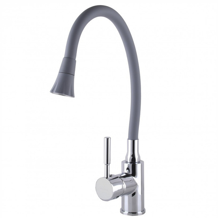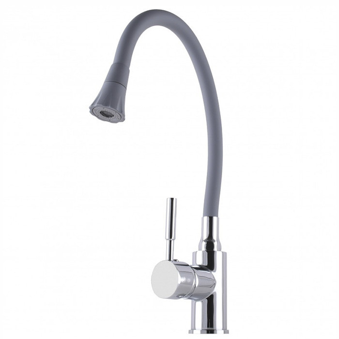 Змішувач для кухні GLOBUS Lux Lazer силіконовий гусак сірий/хром (на гайці)