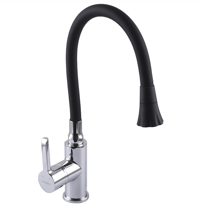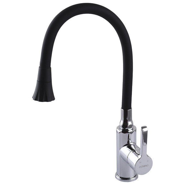 Змішувач для кухні DOMINO PRESTIGE силіконовий гусак чорний/хром (на гайці)
